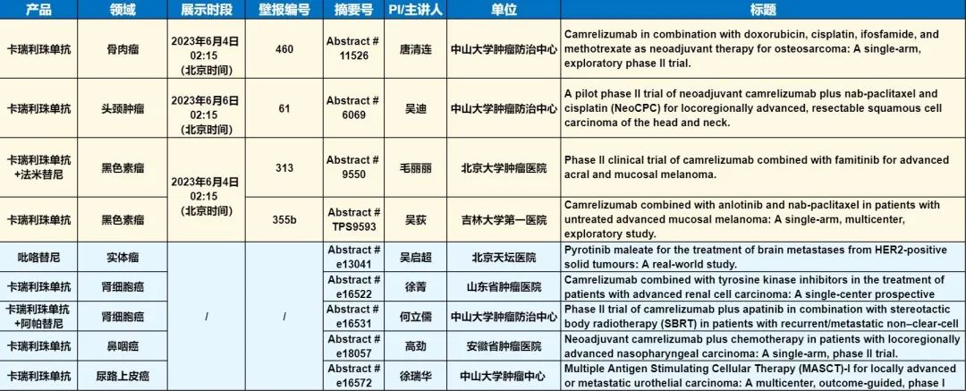 此外,在头颈肿瘤、黑色素瘤、骨肉瘤、鼻咽癌、肾细胞癌、尿路上皮癌等多个领域,卡瑞利珠单抗、吡咯替尼等产品相关研究一共入选了4项壁报展示和5项线上发表,彰显了博天堂918医药强大的自主研发综合实力。