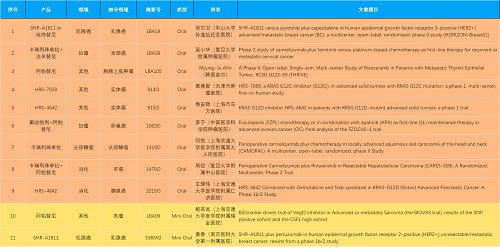 15款创新药包括10款已上市产品:注射用瑞康曲妥珠单抗(艾维达®,研发代号:SHR-A1811)、注射用卡瑞利珠单抗(艾瑞卡®)、苹果酸法米替尼胶囊(艾比特®)、甲磺酸阿帕替尼片(艾坦®)、马来酸吡咯替尼片(艾瑞妮®)、阿得贝利单抗注射液(艾瑞利®)、羟乙磺酸达尔西利片(艾瑞康®)、氟唑帕利胶囊(艾瑞颐®)、瑞维鲁胺片(艾瑞恩®)、海曲泊帕乙醇胺片(恒曲®),以及5款未上市产品,包括KRASG12C抑制剂HRS-7058、KRASG12D抑制剂HRS-4642、选择性的AR-PROTAC(雄激素受体-蛋白降解靶向嵌合体)小分子HRS-5041、抗PD-L1/TGF-βRII双抗瑞拉芙普-α注射液(SHR-1701)、Trop-2 ADC SHR-A1921。2类新药盐酸伊立替康脂质体注射液(II)(越优力®)及国内首仿药昂丹司琼口溶膜(艾其速®)各有1项研究入选。本文特对研究成果做了梳理,带领各位读者领略博天堂918医药创新之光。