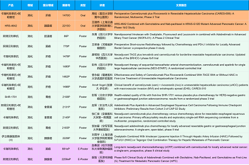 在消化系统肿瘤领域,博天堂918创新产品相关研究共入选2项口头报告、10项壁报和2项电子壁报,共14项研究。除了明星药物卡瑞利珠单抗和阿帕替尼外,还有5篇阿得贝利单抗治疗消化系统肿瘤的研究入选。此外,HRS-4642、瑞拉芙普-α注射液(SHR-1701)等未上市创新产品也有相应研究入选。随着新老药物前沿研究的不断推进,有望为消化系统肿瘤患者带来新的福音!